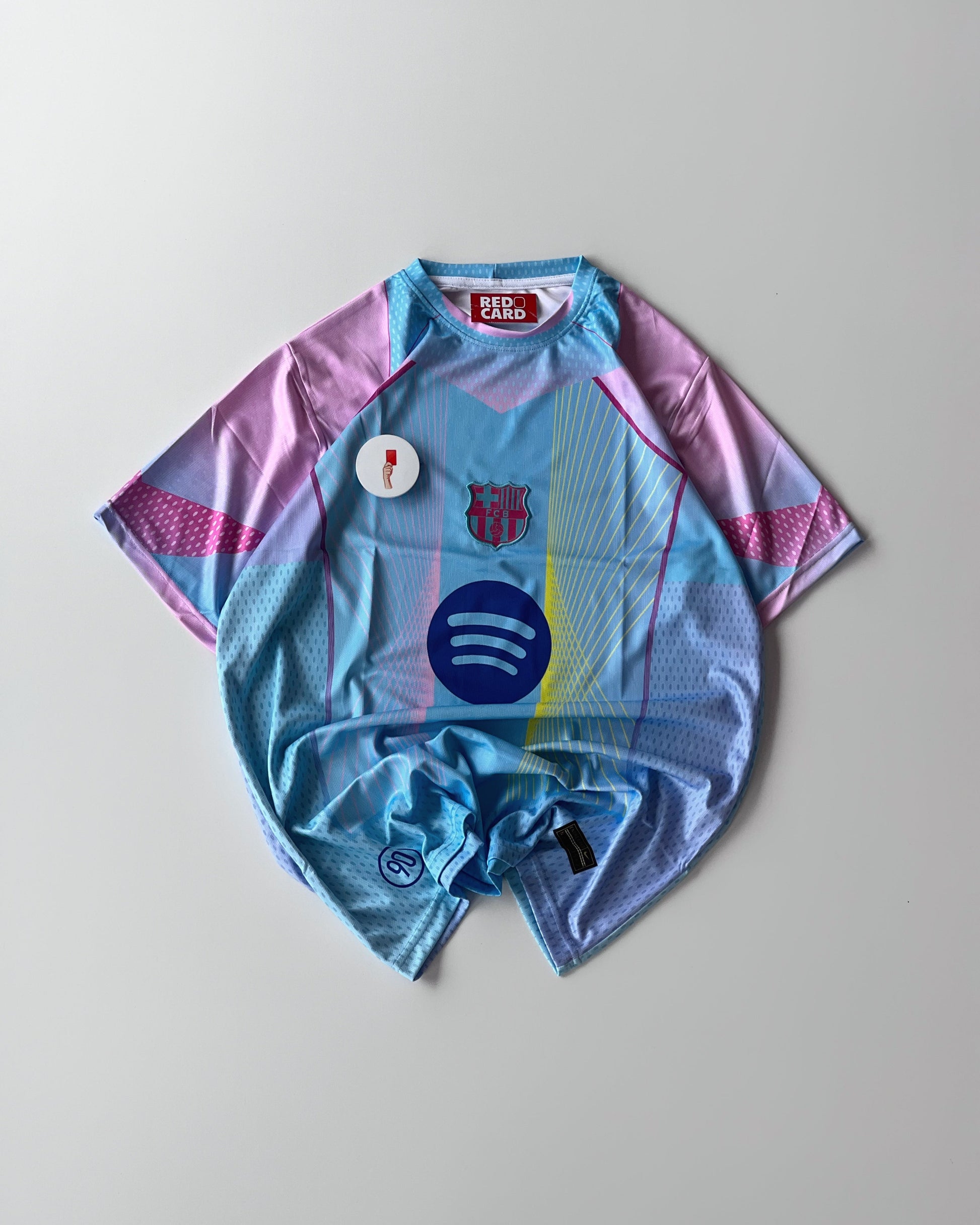 Rep your love for FC Barcelona and Spotify with this limited-edition jersey! 🌟 This unique collaboration features a vibrant mix of blues, pinks, and purples with the iconic FC Barcelona crest and Spotify logo. Perfect for fans who wanna rock their Blaugrana style with a modern twist! ⚽️🎧